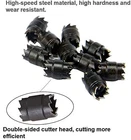 Reppkyh 15-Pack Spot Weld Cutter Sets - Double Sided 3/8" HSS Black 15 Pack Product Details Widely applicable : The 3/8 inch cutting spot welds remover fits most 1/4 inch drills, arbor with flats to elimi te spinning in chuck. Suitable for thin stainless steel sheets, iron sheets, aluminum sheets, F.R.P or other thin metal sheets. High-quality Material : The double-sided blade is made of heat resistant thicker steel in high standards. High strength and hardness, which ensure quickly separates spot-welded panels without distortion. Center pin on the bit is spring-loaded. Spot Weld Cutter Tool : Easy to replace the blades when it begins to dull High Speed and Stable : Drilling stably, small incision resistance, high speed, do not breaking the border. the item great for removing spot-welded panels or metal sheets without distorting the metal or damaging the underlying panel, alleviates the need to pry and break welds. Package : Our Spot Weld Cutter Set includes: 1 x Cutter Drill With Double Cutter+11 x Extra 3/8 inch Cutters+2 x Pilot Pins. Type: Double Sided Rotary Spot Weld Cutter Material: HSS Diameter of the Saw Tooth Part: 3/8(9.5millimeter) Net Weight:2.2oz(62g) Use: iron cast iron alloy steel carbon steel die steel Color:Black. Package Including Package Includes: 1 x Drill with Cutter.2 x Pilot Pin.10 x Extra 3/8 cutters.