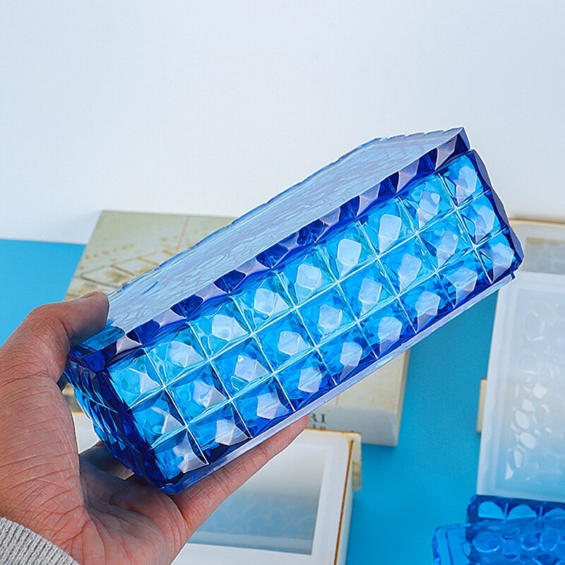 Features: Product Material:Made of quality silicone, soft and flexible, durable and reusable, the silicone material makes it easy to clean, easy filled, easy de-molding. Easy To Use:Just lightly twist the mold, the piece can be easily push out, this flexible silicone mold has non-stick surfaces. Add glitter powder,liquid resin dyes, dried flower, cards with pretty patterns or other accessories to the resin to make the creation more diversified. Application:Suitable for making jewelry storage box, home decorations and These resin molds are only for casting resin,not for coating resin. Specifications: Color: Clear Material: Silicone Size:As Picture Shows Quantity:2Pcs Package Includes: 1x Storage Box Mold 1x Lid Mold note: Please allow a little error on the size due to manual measurement. The color might exist slightly difference due to different displays.