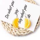 Resin Long Tangerine Pendant Earrings Fashion Fruit Drop Dangle Earrings Features: and high and high Fruit Earrings pretty lemon earrings. The attractive appearance has a sophisticated fruit earring give people a for feeling. Material--Made of Eco-friendly resin with safe for skin and guaranteed outstanding and colors. Widely Applicable--These earrings are elegant accessory for many occasions, such as wedding, ceremony, birthday party, holidays, engagement, dating, festival, daily wear and so on, brighten your life and good moon for everyday. Easy Matching--Earrings with shiny color suitable for a variety of combinations with long dress, skirts, suits, fancy dress, jeans and so on. Fruit earrings for women girls or kids. Gift--It is for for your Mother, Wife, Girlfriend, Friend, Grandmother, Daughter, Sister, Aunt especially on important holidays like birthdays, Valentine's days, Mother's Days, Christmas, Specifications: Resin Size:Approx.6.1x2.1cm/2.40x0.83inch Package Includes: 1 Pair of Tangerine Dangle Earrings note: Please allow 0-1cm errors due to manual measurement, make sure that you do not mind before you order. Due to the difference between different monitors, the picture may not reflect the actual color of the item.