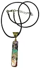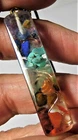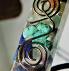 This beauty is a mixed stones resin pendant with copper coil in the sacred spiral formation. Has a gold tone ornate bale and a nice herringbone leather cord with a lobster claw clasp. Very pretty. Size: 2 1/2" including bale 10 1/2" including cord. Note: The photos are zoomed in to provide details. They may appear extremely large in the photos. Please see actual size above. COMBINED SHIPPING is available automatically at checkout. I cannot hold items after you pay. If you wish to combine, ALL items must be paid for at the same time. JWL-RES PEND-2