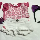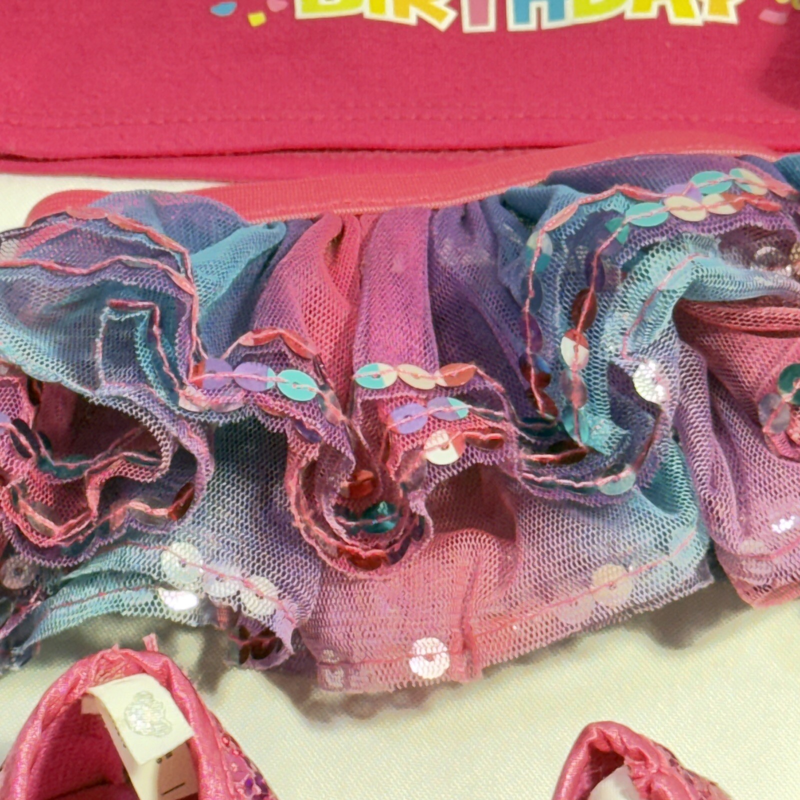This is a great collection of retired Build-A-Bear Workshop clothing, perfect for any bear enthusiast looking to add to their collection. This set includes a happy birthday skirt, shorts, shirt, and shoes, all original and in excellent condition. The pieces are vintage and handmade, with a franchise value of Build-a-Bear. The set is perfect for any occasion, especially birthdays, and includes six pieces in total. The clothing type includes a shirt, shorts, shoes, and skirt, all designed for bears. This is an original licensed reproduction and not an antique. This set is sure to delight any Build-A-Bear fan. No rips or markings