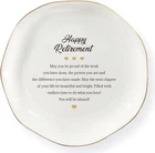 Retirement Gifts for Woman Ring Dish, Happy Appreciation White Product Details Color: White Brand: YZMICSTAR Material: Ceramic Style: Modern Special Feature: Washable Recommended Uses For Product: Ring, Bracelet, Necklace, Earring, Watch, Key Product Dimensions: 4.5"D x 4.5"W x 1"H Target Audience: Women Shape: Round Occasion: Friendship Day, Thanksgiving Jewelry Storage Type: Jewelry Dish Item Weight: 0.634 ounces Pattern: Retirement Special Features: Washable Batteries Included?: No Batteries Required?: No Color: White Brand: YZMICSTAR Material: Ceramic Style: Modern Special Feature: Washable Recommended Uses For Product: Ring, Bracelet, Necklace, Earring, Watch, Key Product Dimensions: 4.5"D x 4.5"W x 1"H Target Audience: Women Shape: Round Occasion: Friendship Day, Thanksgiving 【Dimensions】This monogrammed ceramic jewelry dish measures 4.75 x 4.78 inches. 【Aesthetic Decor】This tray is not only a container for jewelry, bracelets, necklaces, rings, earrings, keys, but also a perfect decor for your home, office, coffee table, bookshelf, dresser top or any room. 【Material】Superior Quality and Exquisite Workmanship, this ring dish is made from great quality glazed ceramic, lead-free, cadmium-free, hand make gold line edge. 【Well Packaging】Wrap with foam bag package to reduce the jewelry tray shaking in transit, make sure the trinket dish is complete when you receive it. Outside with white paper box packaging is ready to give as a gift. 【Unique Gift】 With the meaningful quote printed on jewelry dish, never fade as the time pass,suitable for best retirement gifts for women,coworker gifts for women leaving new job promotion gift, boss gifts for women, farewell gifts for coworker leader, teacher retirement gifts, nurse gifts, doctor gifts, gifts for retired women.