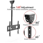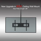 Specification: 1. Brand: LEADZM 2. Model: TMC-7006 3. Type: Ceiling Mount 4. Supportable Display Size: Fit most 32"-70" 5. Tilt Range: 5°to -15° 6. Pan Swivel Angle: 60 degree 7. Adjustable Height Range: 960mm ~ 1160mm 8. Load Capacity: 110lbs 9. Material: Cold Rolled Plate 10. Surface: High Temperature Paint Piano 11. Vesa Size: Max: 600mm x 400mm Package Includes: 1 x TV Wall Mount 1 x Standard Hardware Kit(The Screw kit is standrd,don't make sure fit all the TV models,please buy one kit if don't fit) 1 x User Manual Introductions: The Ceiling TV Mount Bracket is perfect for mounting most any 32 to 70 inch TV or Monitor to the ceiling.It is designed to fit televisions of all brands.VESA from 200x100mm up to 600x400mm. Heavy gauge steel construction provides loading capacity up to 110 lbs. Mount height adjustable ceiling mount, tilt and swivel in all directions for multiple viewing angles, allowing you to position the screen perfectly for your application.This mount is perfect for installation in a bar, restaurant, fitness center, waiting area, dentist office, doctors office, garage,grocery stores,family room, and any other building and meeting area. Features: 1. Tilt swivel ceiling mount compatible with 32 to 70 inch LCD HDTV flat panel screen display 2. Durable steel construction supports weight capacity up to 110 lbs 3. Multi-directional adjustment tilt and swivel for perfect viewing angle 4. Multi-directional adjustments: tilt 15 degrees forward and 5 degrees backward; swivel left and right 60 degrees 5. Tilting ceiling plate allows mounting for wall and both flat and bevel roof installation
