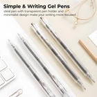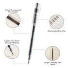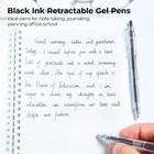 10 Pack Gel Pens: You will receive 10 pcs black ink retractable gel pens with large-capacity pen refill and minimalist design pens can make your writing more focused and efficient. 0.5mm Fine Point Smooth Writing: 0.5mm spring bullet point with large capacity and quick dry ink smooth writing, no skip and easy to clean. You just need to lightly press the pen cap, and the tip will automatically pop out or retract. Quick-Drying Ink & Large-Capacity Pen Refill : These retractable roller gel pens will dry quickly after writing, which can make your hands less likely to get dirty and keep the paper clean. Large capacity pen refills help you write last longer, suitable for office meeting and note writing. Minimalist Gel Pens Design: Ideal gel pen with transparent pen holder and minimalist design make your writing more focused. Large angle pen clip can help you firmly secure your pen to a notebook, backpack, or textbook and easy to carry. Multi Purpose Use: gel pen is suitable for adults and students for writing, diary, sketching, painting, scrapbooking, making gift cards, to meet your various needs in daily study and work.