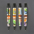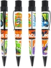 Images are mostly stock. New in sealed tube. Numbered A wingless orange dragon weaving its way around a pagoda; a black dragon with green wings and green armor on its back swooping past a ship on the sea; a green fire-breathing dragon towering over a medieval-inspired castle; and a purple dragon with orange wings and sharp black armor on its back snaking around a white castle. Printed USPS Dragon's design Stealth Black accents Top disc - dragon silhouette USPS - Retro51 Packaging Tube Rollerball Refill