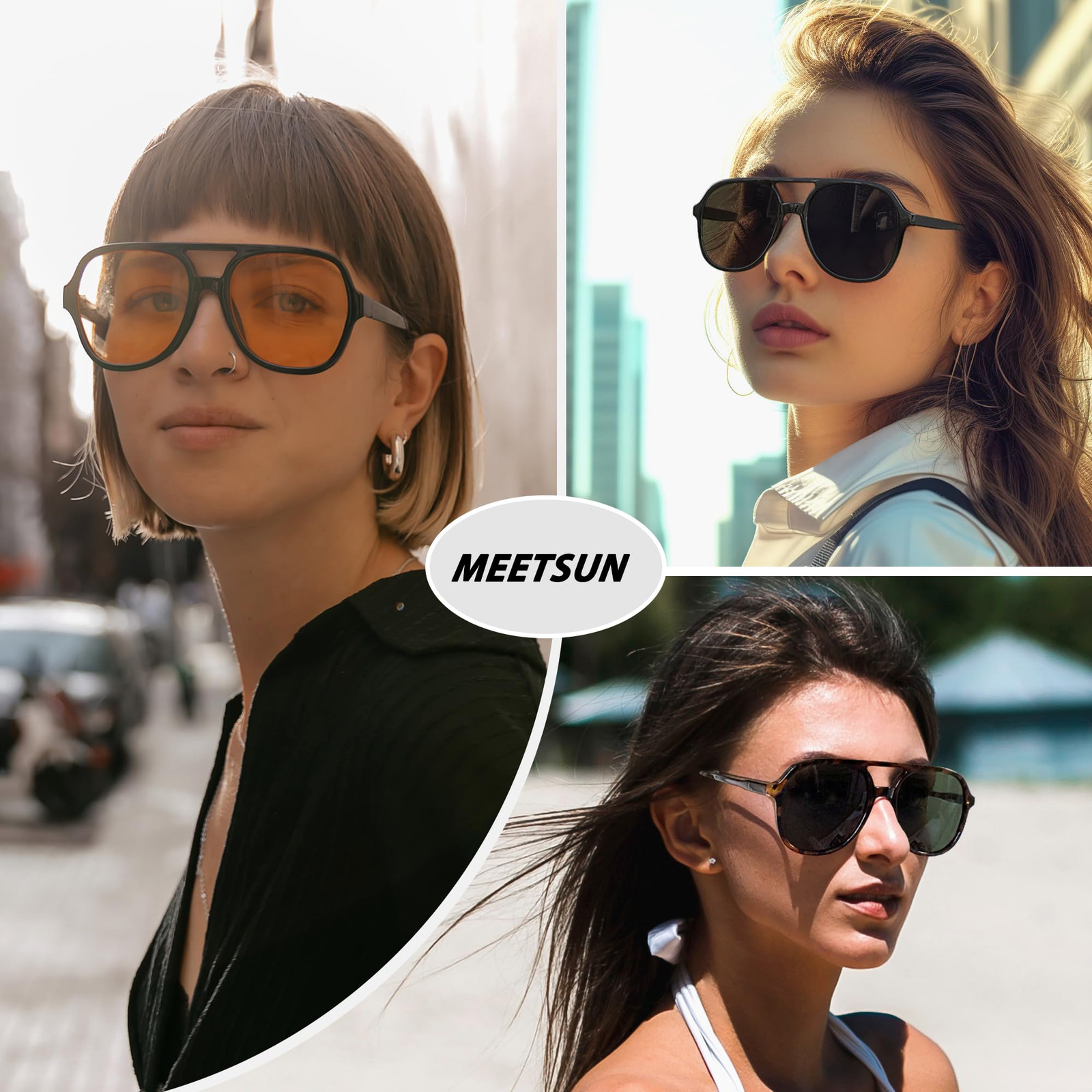 UV400 PROTECTION LENSES - Effectively block harmful UVA/UVB rays, provide UV400 protection, enabling you to relish any sunny outing without concerns RETRO AVIATOR STYLE - Unisex classic double bridge square aviator design is universally flattering for diverse face shapes, adding a vintage 70s vibe to any look; versatile for any occasion, such as driving, traveling, vacation, shopping, selfies, beach, dancing COMFORTABLE TO WEAR - Designed with ergonomics and lightweight materials for a comfortable fit, Featuring a solid PC frame and sturdy metal hinges to endure daily use for extended periods DIMENSION AND PACKAGE - Lens Width: 55 mm; Lens Height: 51 mm; Temple Length: 138 mm; Bridge: 20 mm; Package: Aviator sunglasses, glasses paper box, glasses pouch, cleaning cloth CUSTOMER SERVICE - If you have any questions, concerns, or issues with our sunglasses, our dedicated customer service team is always available