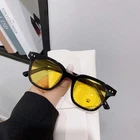 Product information: Material: PC Style:Fashion simple Features:UV385 Colour: black frame yellow,black frame red,black frame blue,black frame green,black frame black grey Size Information: Frame width:145MM Frame height:50MM Lens width:60MM Mirror leg length:140MM Nose spacing:20MM Packing list: Glasses*1 Product Image: