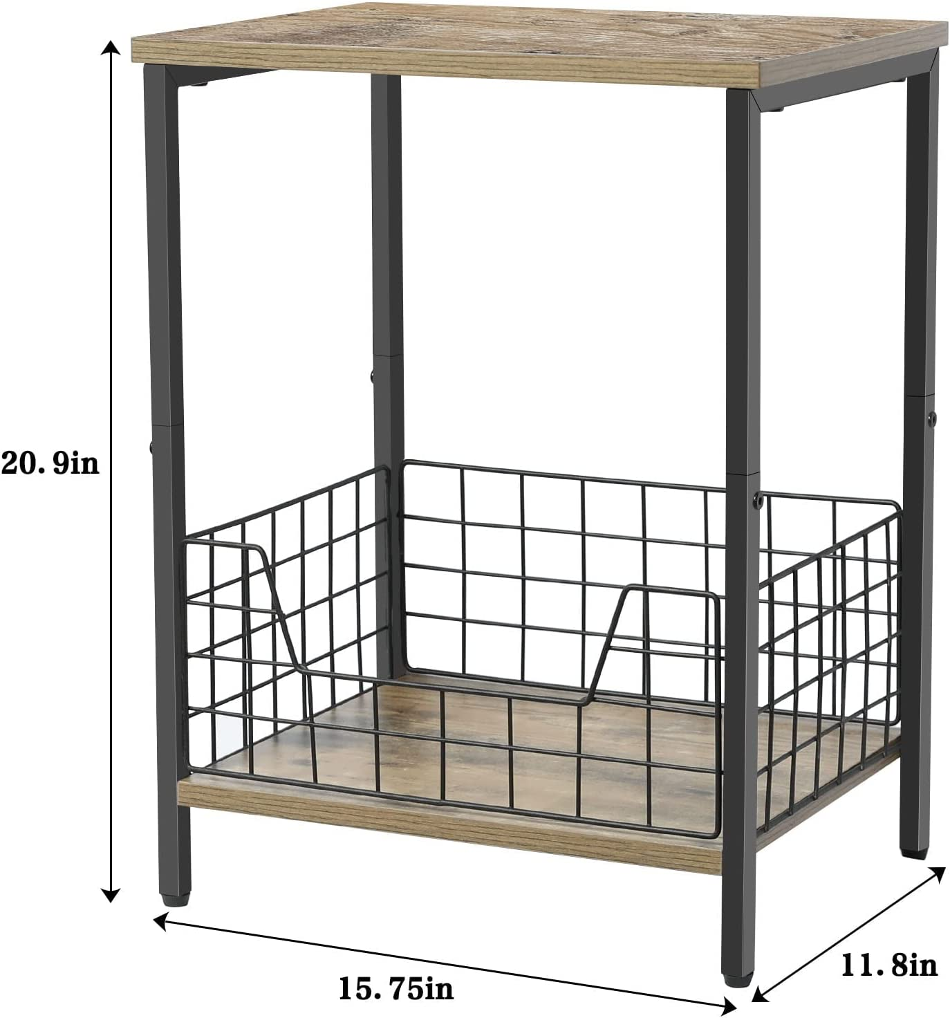 Record Player Table, Industrial Retro Side Table Nightstand 2-Tier Fast Shipping! Product Description: 【Patent Pending Versatile Use】X-cosrack End table not only can be used as a functional sofa side table,bedside table alongside your chair, sofa, couch,bed in your room, but also can be used as a record player stand to hold a small record player, and the bottom basket can hold your favorite records.The industrial retro end side table will greatly lighting your whole room!Save more space for you 【Record Player Stand】2-Tier end table for additional storage meet all of your different needs.The top open smooth shelf gives sufficient storage place for storing and displaying. And the bottom wide U-shape iron wire basket for easy access and can storage records, snacks,cans or other stuff you want to put inside 【MDF Wood&Metal Sturdy Construction】Made of by medium density fiberboard,iron wire and metal frame,strongly support the end table. Also equipped with 4 feet while adjusting side end table height on uneven surfaces and enhancing stability 【Easy to Assemble】Come with instruction and all necessary hardware included, you will never get stuck with the assembly jobs for this end table.Product dimensions: 15.75"*11.8"*20.9" 【Ideal Room Item】Use this side end table in living room,bedroom,kitchen,study room,office and more...It will always at your service and never let you down! If you have any problems for this end table,please don’t hesitate to contact us Product Description Side table specifications: Style: Industrial retro style Color: Rustic Brown, Black Material: Sturdy MDF wood and metal construction Product Size: 15.75"*11.8"*20.9"(L*W*H) Product Weight: 9.24 lb Multi purpose: Can be used as a end table,sofa side table,nightstand,Record Player Stand Suitable for Small Spaces Sturdy MDF wood and metal construction X-cosrack Industrial Retro 2-tier End Table with Storage for Living Room Bedroom Kitchen Small Space As Record Player Stand As Side Table As Nightstand Why need this end tables? Do you upset of the mess caused by the snacks or remotes next to your sofa? The sofa side end table can keep snacks,coffee,remotes and other things at hand next to your sofa,let you fully enjoy your leisure moments. Do you worried about the lack of storage space at your bedroom? This bedside table can be used beside your bed for your phone,alarm clock and eye masks. Do you need a item to make your home more tidy? This end table storage shelf can be placed in the study room for files,books and office supplies or in the kitchen for vegs,fruits,cans and more. 31K POSITIVE REVIEWS!! FAST SHIPPING!!!! 100% AUTHENTIC PRODUCT OR YOUR MONEY BACK GUARANTEE! 100% satisfied customers. It says it all. Thank you for shopping with us!
