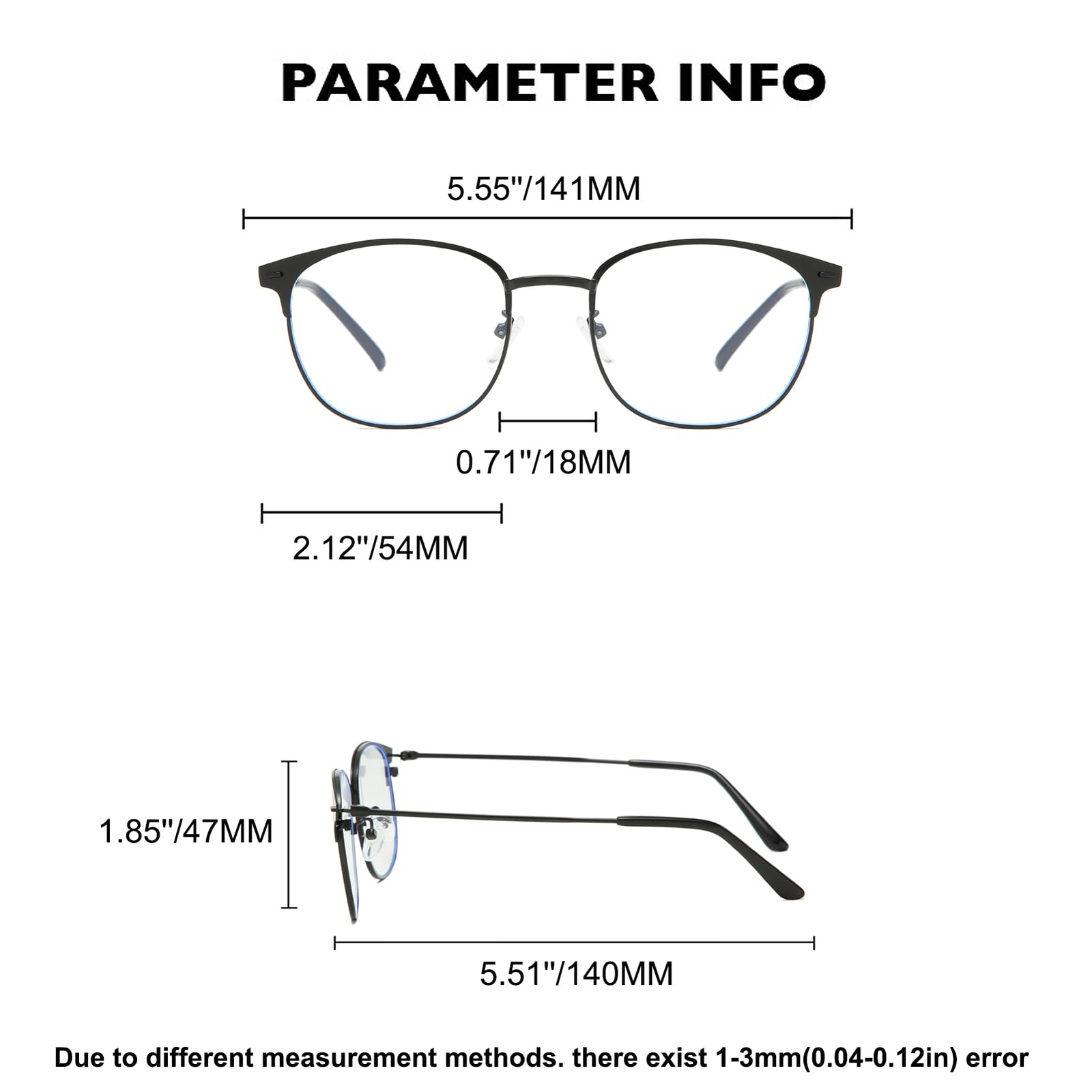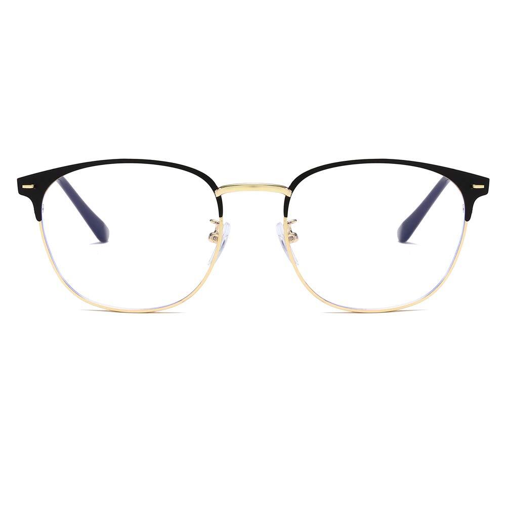 Retro Semi-rimless Round Blue Light Blocking Glasses Horn Rimmed Nerd Clear Lens Computer Gaming Eyeglasses Black Gold Description and features Measurement: Lens Width-54mm(2.12''), Lens Height: 47mm(1.85''), Bridge-18mm(0.70''), Arm-140mm(5.51''), Frame Width: 141mm(5.55'') (approx.) Blue Light Filter Glasses - Blue light filter glasses can effectively block ultraviolet radiation, provide 100% UV400 protection and filter harmful blue light. Relieving eye fatigue, help you sleep . Material–These glasses are made of durability stainless steel full frame, anti-blue light & anti-radiation lenses, soft silicone nose pads, all the quality details ensuring you a perfect wearing experience. Classic Brow-line Design – The round frames can be matched with all kinds of facial forms, and thin-rim glasses make you look more refined. Black paint finish, suitable for business and leisure. Responsible After-Service: Customers can return and get refunded in case the purchasing is satisfactory for any reason. You have no risk to try and we will provide you the service! Full-rim Round Blue Light Blocking Glasses Horn Rimmed Nerd Clear Lens Computer Eyeglasses FEATURES *Reduce eyestrain to Enjoy your digital time, NO worry about eye fatigue, blurred vision and headache. *clear lens glasses is great for those who don't dark lens but still want to get sun protection. They are fun fashion accessory as well. *Skin friendly silicone nose pads – The silicone nose pads can adapt to different nose shapes. The nose shapes can reduce the burden on your nose. *The multiple colors can be matched with different outfits in a daily fashion. *The glasses passed US and EU CE test. It is also a wonderful yet practical gift idea for friends and family! 30 DAYS MONEY BACK GUARANTEE Please just let us know if you're happy with your purchase within 30 days, and we'll take care of you. You have no risk to try. : *1x Cleaning soft cloth *1x Original box *1x Glasses Tips: 1.No paper towel or cloth, which can grind dust and fibers into Lenses and leave scratches. 2.Avoid using household detergents or soaps, they are powerful enough to slowly disintegrate Lenses coatings. 3.Be careful of the seawater corrosion and avoid consistent hyperthermal exposure under the car windshield. Return Policy ⦿ All our products come with a 30-Day Return Policy. If you would like to return your item and you are within 30 days of the purchase, and it is still in its original condition, you can return the item by contacting us through eBay messaging. ⦿ If you are not 100% satisfied, please let us know the Detailed Problem,We will give you a 100% satisfactory solution ⦿ If you received an incorrect, damaged, defective, or item not as described, contact us for a partial/full refund or replacement on our cost. ⦿ Free Shipping and Free Return 30-Days Money Back Guarantee. ☎ For all returned products, buyers MUST contact us for the returning address. Shipping ⦿ We do not ship to a different address. we will ship to the address you provide on the ebay only. Please check your address before purchase. ⦿ It should take 2-4 business days for the product to reach your destination. ⦿ If the product doesn't reach your destination within the time limit, please give it an additional 1-2 business days in case of postal delays and/or possible technical issues. ⦿ We use a selection of shipping services such as UPS, FedEx, USPS etc. ⦿ We ship only to the 48 contiguous states of America. We do not ship to Hawaii, Alaska, US Protectorates, APO/FPO addresses. Local pickups are not offered. ☎ If it takes any longer than that, please do not hesitate to contact us to resolve the issues. Contact us ☎ Please contact us via eBay message. And your message will be replied within 1 business days. For any queries, please feel free to contact us, we will get back to you as quickly as possible. Customer 100% satisfaction is our first priority and goal. We are always working hard for maintain high standards of excellence and resolve your problem in best way. So your POSITIVE FEEDBACK is very important. If you have any problem of the item, please feel free to let us know before leaving your feedback. We will try our best to solve your problem. About us We are here to give you quality products, competitive pricing and amazing service in order to make sure you get the best deal online, Thank you for your business and the opportunity to serve you.