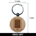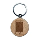 Retro Smart Phone Engraved Wood Round Keychain Tag Charm