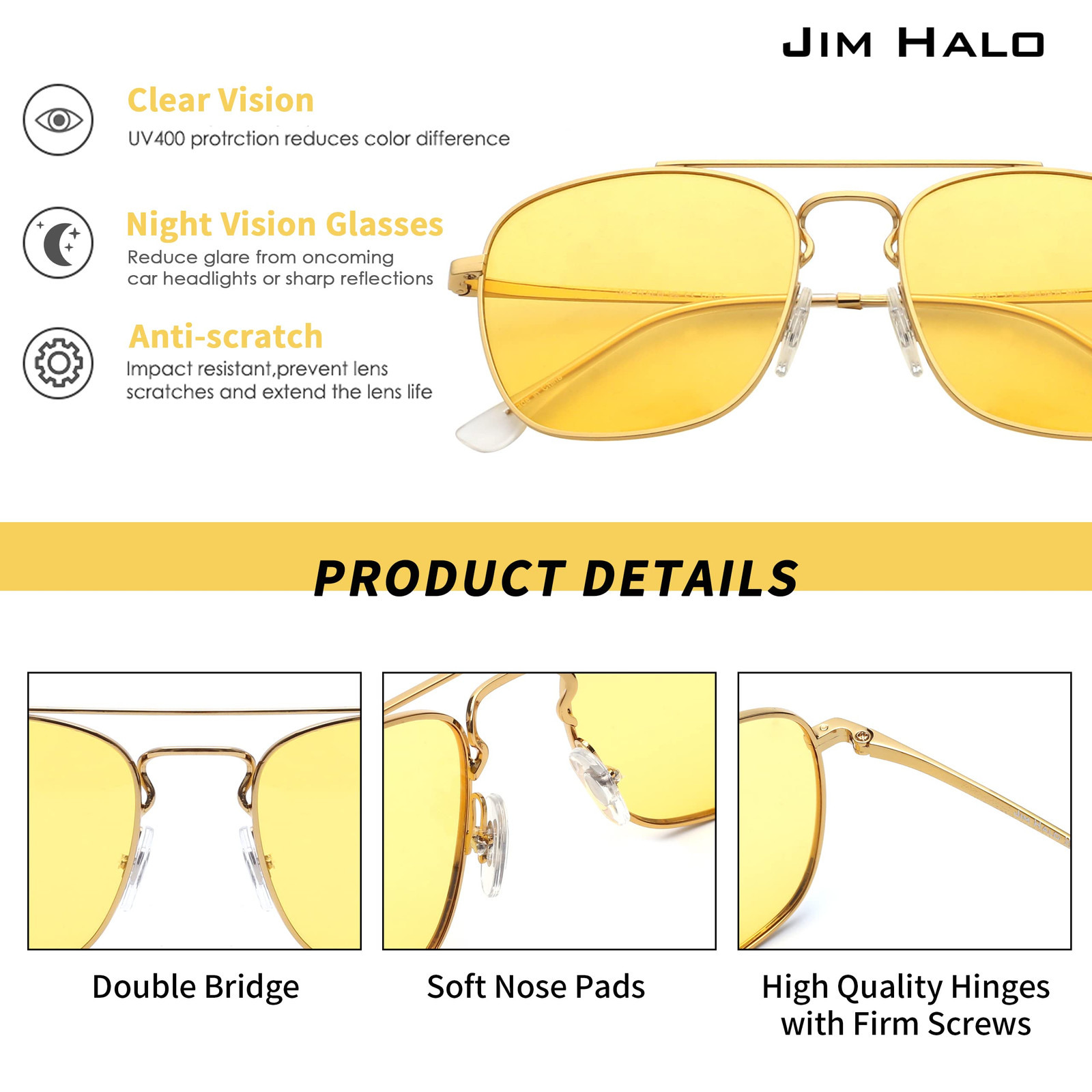 Night Vision Glasses For Driving: Anti-glare polarized yellow lenses provide greater clarity in darkness and other low-light conditions, reducing glare from car lights, improving night driving performance. Polarized TAC Lens: 100% UV400 protection coating, blocks 100% harmful UVA & UVB Rays. Polarized sunglasses reduce glare reflected off of roads, bodies of water, snow, and other horizontal surfaces. Restore true color, eliminate reflected light and scattered light and protect eyes perfectly. The yellow lens help reduce eyes strain. Night vision glasses with yellow lenses are perfect for driving. Especially at night, on rainy or foggy days. Comfortable Nose Pads Design - adjustable silicone nose pads, you can adapt it to fit your nose shape and it will make you more stable and more comfortable to wear. Multiple Lens Colors - Choose from a variety of frame colors, lens colors, and lens treatments when purchasing these classic aviator sunglasses.Choose a color scheme that complements your personal brand and sense of style.