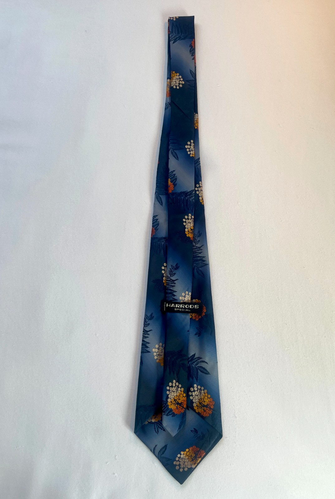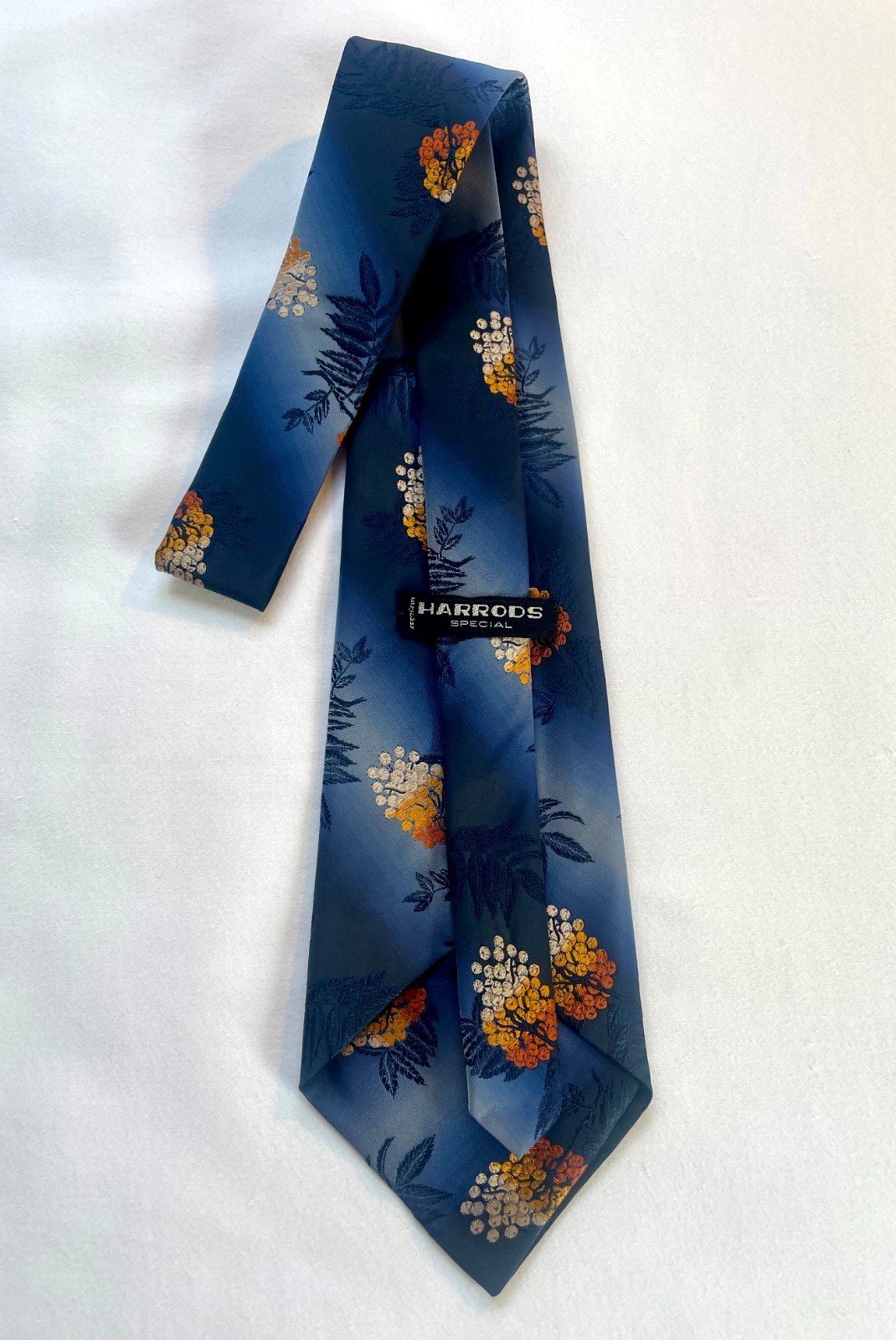 This amazing men's tie is a rare vintage from Harrods, with a tropical floral pattern in multiple colors. Measuring 4.5" wide and 56" in length, this textured fabric tie features a retro art deco style. Made in the United Kingdom, this unique piece is a special addition to any gentleman's wardrobe, and is perfect for adding a touch of vintage charm to a classic look. (Not certain what the fabric is, but it has a polyester blend feel to it.) Please see all photos and feel free to ask any questions. I will ship within 1 day of payment received. I am grateful for your business and your satisfaction is a to priority. Thank you for looking!