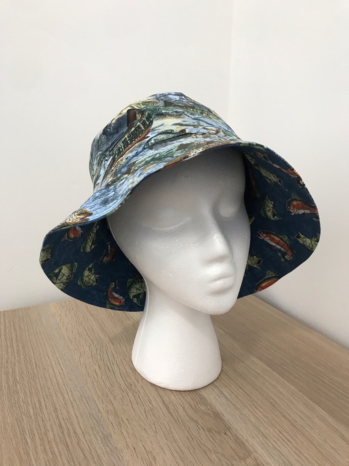 Handmade Unique Reversible Unisex Fashionable Bucket Hat. Can be easily folded and will keep it’s shape when worn. Adult size. Fits between 21” to 23” circumference (Measurements are approximate, around width of head.) Order(s) will be mailed next business day. 100% Cotton Machine washable Cold Gentle Dry Cycle