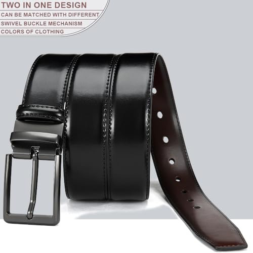 Reversible Men's Leather Belt 1.25" Adjustable Black Brown 34"-36" Waist
