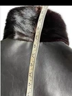 This custom made black reversible men's mink leather bomber jacket in size large is a stylish and luxurious outerwear option. Made in the United States, the jacket features a mid-length design with a classic fit and a zip closure. Perfect for various occasions such as parties, formal events, and business meetings, this jacket is both versatile and sophisticated. The unique reversible feature adds an extra touch of practicality, making it a versatile addition to any wardrobe for the winter season.