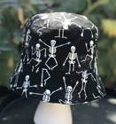 Reversible Unisex Bucket Hat 2-in-1 Black Ghost Skeleton Design