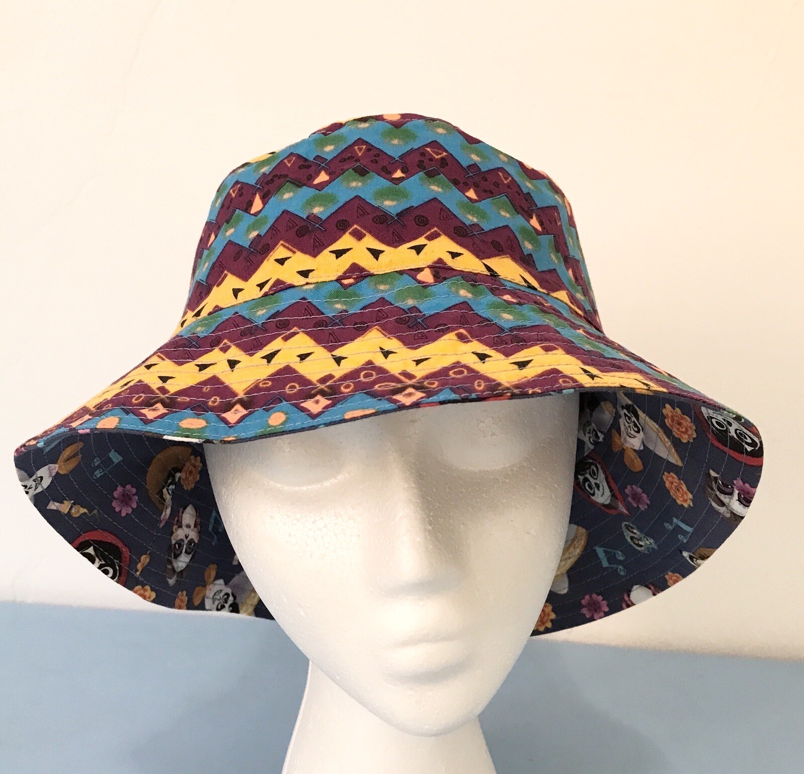Handmade Unique Reversible Unisex Fashionable Bucket Hat. Can be easily folded and will keep it’s shape when worn. Adult size. Fits between 21” to 23” circumference (Measurements are approximate, around width of head.) Order(s) will be mailed next business day. 100% Cotton Machine washable Cold Gentle Dry Cycle