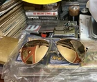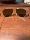 Revo Metro sunglasses in gold / champagne, item number RE 1163 04. Size is 60-14-140. No Case!!This was a display sample. Light scratches on both lens but view Great. Metro’s unique single-bridge aviator design is an updated spin on the timeless style. Metro’s lightweight stainless steel frame is effortlessly held in place with handmade acetate temple tips and adjustable silicone nose pads. True to its name, this is the lens for behind the wheel or on the golf course. The polarized Drive lens of this frame excels at separating colors down to a minute level.