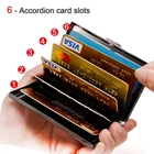 1.SLIM & RFID DESIGN:Easy to carry and put the card holder in any pocket. RFID blocking signals business card holder can protect your credit card wallet from unauthorized scanning. 2.SIZE: Mini size(3.74" x 2.59" x 0.5"), Light weight(0.2LB), 6 card slots, designed to hold credit card, debit card, id card, gift card, business card, ATM card, cash etc. 3.MATERIAL: This small card case is made of stainless steel + PU leather,more stronger and durable than plastic or aluminum item. 4.QUICK ACCESS: The accordion card slots design let you see the cards clearly and easy to take out & put in. 5.PERFECT GIFT: This metal card wallet is packed with individual box, It is a perfect gift for men and women. Not only can be used for yourself, but also it is the wondeful birthday gift for father mother grandfather daughter and friends.