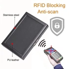 1.SLIM & RFID DESIGN:Easy to carry and put the card holder in any pocket. RFID blocking signals business card holder can protect your credit card wallet from unauthorized scanning. 2.SIZE: Mini size(3.74" x 2.59" x 0.5"), Light weight(0.2LB), 6 card slots, designed to hold credit card, debit card, id card, gift card, business card, ATM card, cash etc. 3.MATERIAL: This small card case is made of stainless steel + PU leather,more stronger and durable than plastic or aluminum item. 4.QUICK ACCESS: The accordion card slots design let you see the cards clearly and easy to take out & put in. 5.PERFECT GIFT: This metal card wallet is packed with individual box, It is a perfect gift for men and women. Not only can be used for yourself, but also it is the wondeful birthday gift for father mother grandfather daughter and friends.