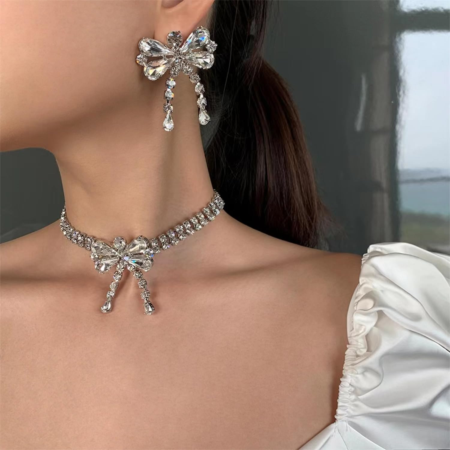 Absolutely love this elegant choker set! The rhinestone bow adds just the right amount of sparkle, and the adjustable chain ensures a perfect fit. The matching earrings complete the look beautifully—so feminine and chic. The quality feels luxurious, and it’s surprisingly lightweight for all that glam. Perfect for dressing up any outfit, whether it’s a casual day out or a special occasion. Gets compliments every time I wear it!