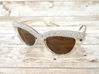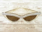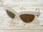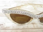 Brand new AND so much INCREDIBLE SPARKLE! Bring out the glamorous movie star in you! Amber Brown Rhinestone Framed Cat Eye Sunglasses Fun retro style shades Amber brown lenses with champagne colored frames UV400 sun protection lenses Frames are made of plastic You MUST see these and touch them to appreciate the sparkle The rhinestones are crystal glass and are not plastic stones We ship out FAST Thank you for stopping by!!