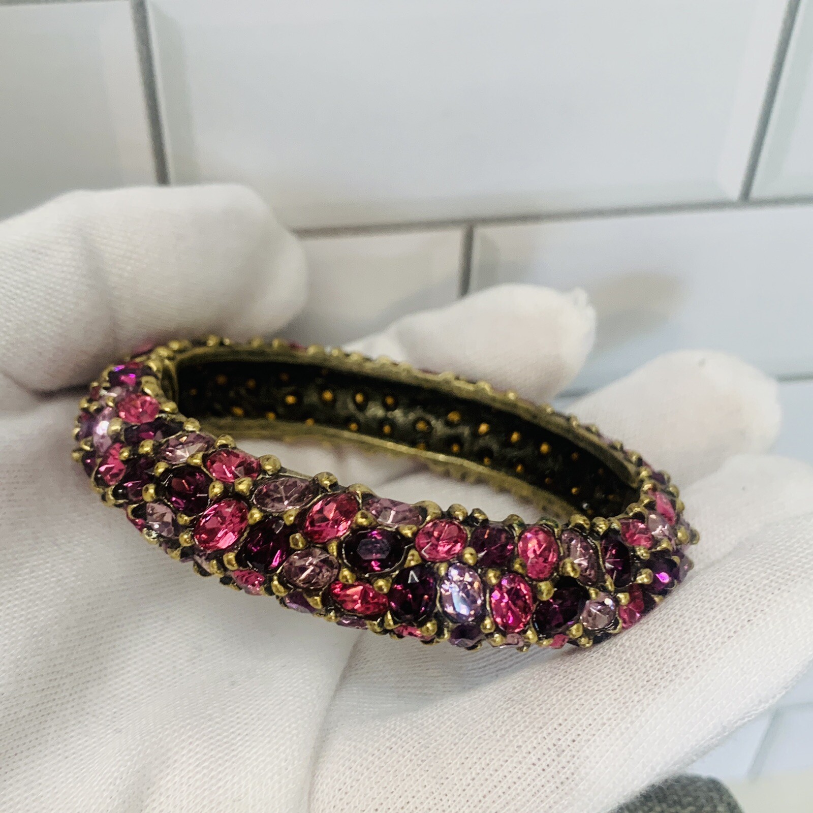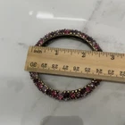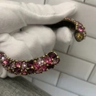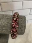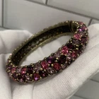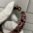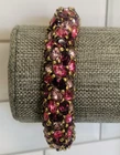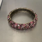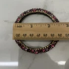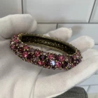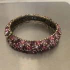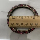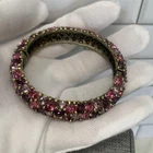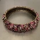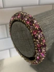 Excellent condition, this bracelet has a stunning array of purple and pink oval paste stones. The inside diameter measures 2 1/4 x 2" and the bracelet measures 5/8" wide. The metal is an antiqued gold color. Snap button closure. Unsigned Size: - 2 1/4" x 2" (inside diameter), 7" (inside circumference) Condition: - Excellent Proudly, Quickly & Carefully Shipped From OHIO, USA THANKS for looking! *Sorry, I do not accept returns, so please make sure you double check the info in the listing. *Payment due within 3 days. *No partial Refund Negotiations. *Since computer monitors vary in color, the actual color of the item may differ from what's shown on your computer screen. *We are not affiliated with any of the brands we sell. *We describe our items as honestly & accurately as possible but it is impossible to be an expert in all realms of collecting & products. We may inadvertently omit information that you as a collector feel is important. *Please e-mail us with any questions you may have PRIOR to bidding. *Please note that sizing can differ from company to company & that sizing is sometimes inconsistent within a company. *Ruler not included, shown for size reasons only.