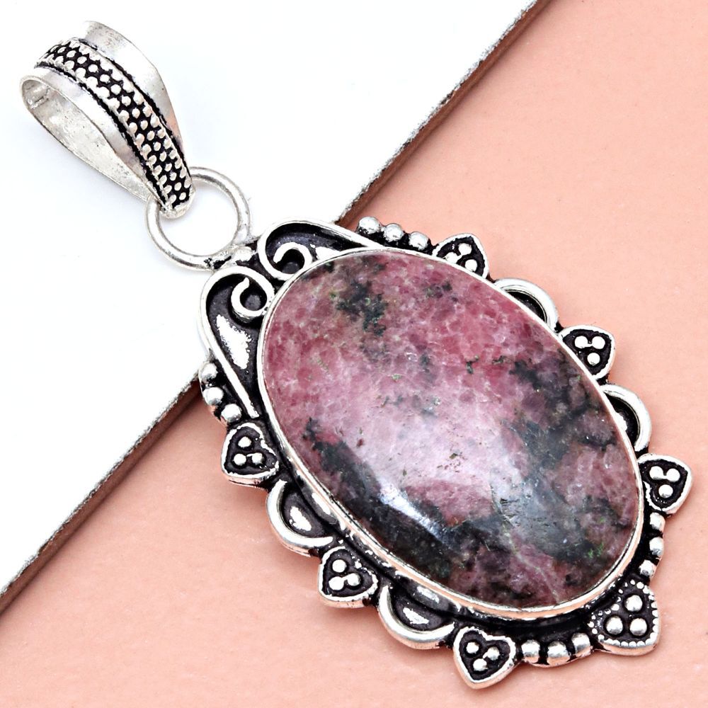 Main Stone Creation: Natural Main Stone Length: 25.4 Pendant Shape: Oval Remarks: We Are Manufacturer & Wholesaller Bulk Buy 10% OFF Handmade: Yes Gemstone Clarity Grade: Eye Clean Metal: Silver Plated Main Stone Shape: Oval Colour: Pink Era: Undated Wholesale: Yes Cut Grade: Excellent Main Stone Treatment: Not Enhanced Setting Style: Bezel UPC: does not apply gtin13: does not apply Color: Pink Vintage: No Material: Stone, Gemstone, Crystal, Cotton Main Stone: Rhodonite Necklace Length: 20 in Antique: Yes Seller Warranty: No Main Stone Colour: Pink Base Metal: Unknown Main Stone Width: 19.05 Chain Type: Snake Brand: Unbranded Country of Origin: India Features: Adjustable, Engraved, Stackable Type: Pendant Metal Purity: Unknown Main Stone Depth: 7 Number of Gemstones: 1 Main Stone Color: Pink Closure: Hook Style: Pendant, Locket, Chain, Tennis Pendant/Locket Type: Charm Customized: No Country/Region of Manufacture: India Secondary Stone: No Stone Occasion: Anniversary, Birthday, Christmas, Engagement, Mother's Day, Valentine's Day, Wedding Theme: Beauty, Bohemian, Ethnic, Family & Friends Item Length: 2" Customised: No