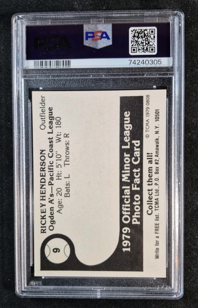 Rickey Henderson 1979 TCMA Ogden A's #9 Minor League PSA 8 NM-MT HOF Check out our store for other great deals! Thanks for looking!