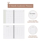 ✅ TYPOGRAPHIC WEEKLY & MONTHLY LAYOUT: The planner features a clean and elegant typographic layout for both weekly and monthly pages. This ensures clarity and ease of use, allowing you to effortlessly plan your schedule. ✅ ACADEMIC YEAR FORMAT: The planner covers 18 months, starting from July 2024 and ending in December 2025. This ensures that it accommodates an entire academic year while also offering extra months for planning ahead. ✅ AMPLE SPACE - Each planner notebook has a monthly and weekly two-page spread with plenty of space to jot down your appointments, plans and to-do’s. The organizer was made to be used in many different places; the classroom, home, or office. Built with high quality materials and twin-wire binding, easily flip the notebook to Today and start planning! ✅ HOLIDAYS, NOTES & EXTRAS - Holidays are noted, so keep on top of your special dates and dream vacations. At the front is a 3-Year reference page, while at the back has Notes pages to jot down any notes throughout the year. Not only that, each weekly spread has the current and succeeding month at-a-glance! All you need to get organized. ✅ SIZE AND COLOR OPTIONS: Riley's planner is available in two convenient sizes: 8 x 6 inches and 8.5 x 11 inches. You can choose the size that suits your preferences and needs, whether you prefer a compact and portable planner or a larger one for more detailed planning. The planner is offered in three attractive colors: Green, Blue, and pink. You can select the color that resonates with your style and personal aesthetic.