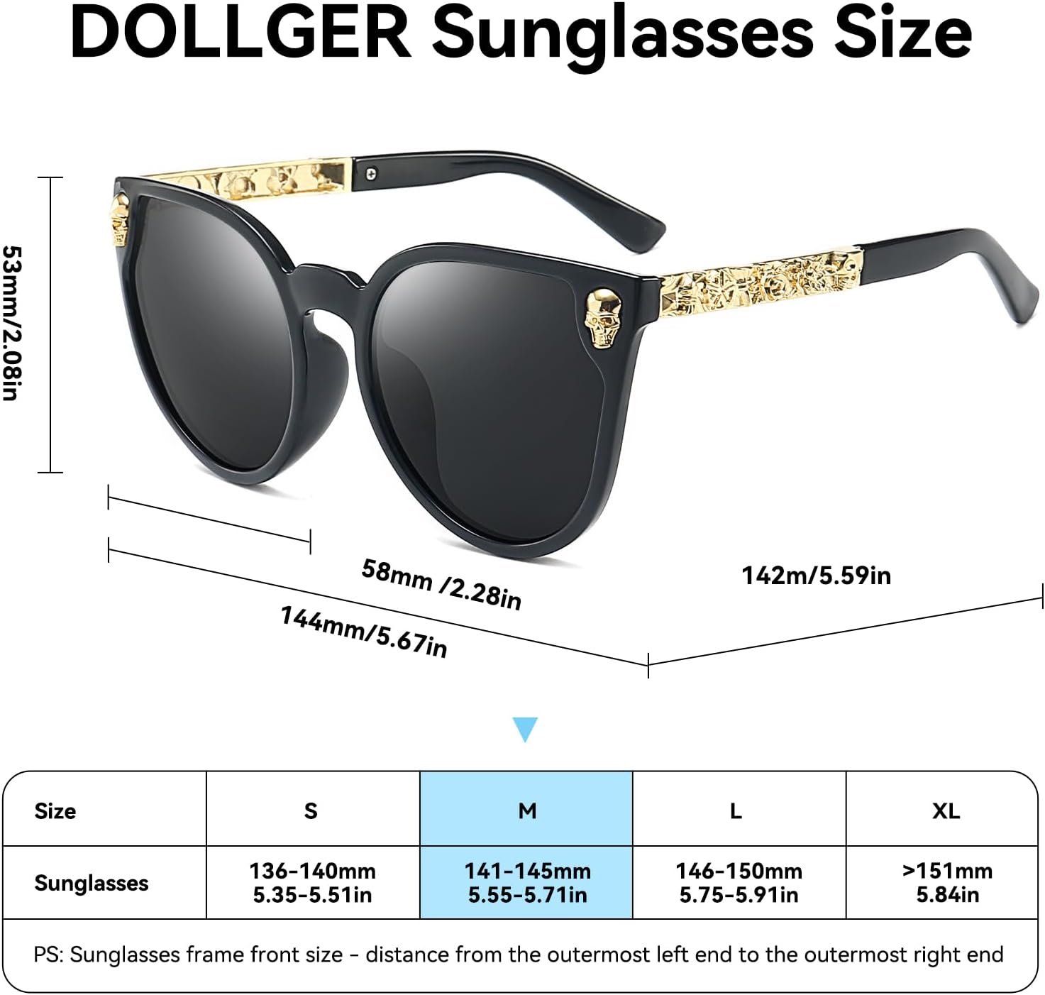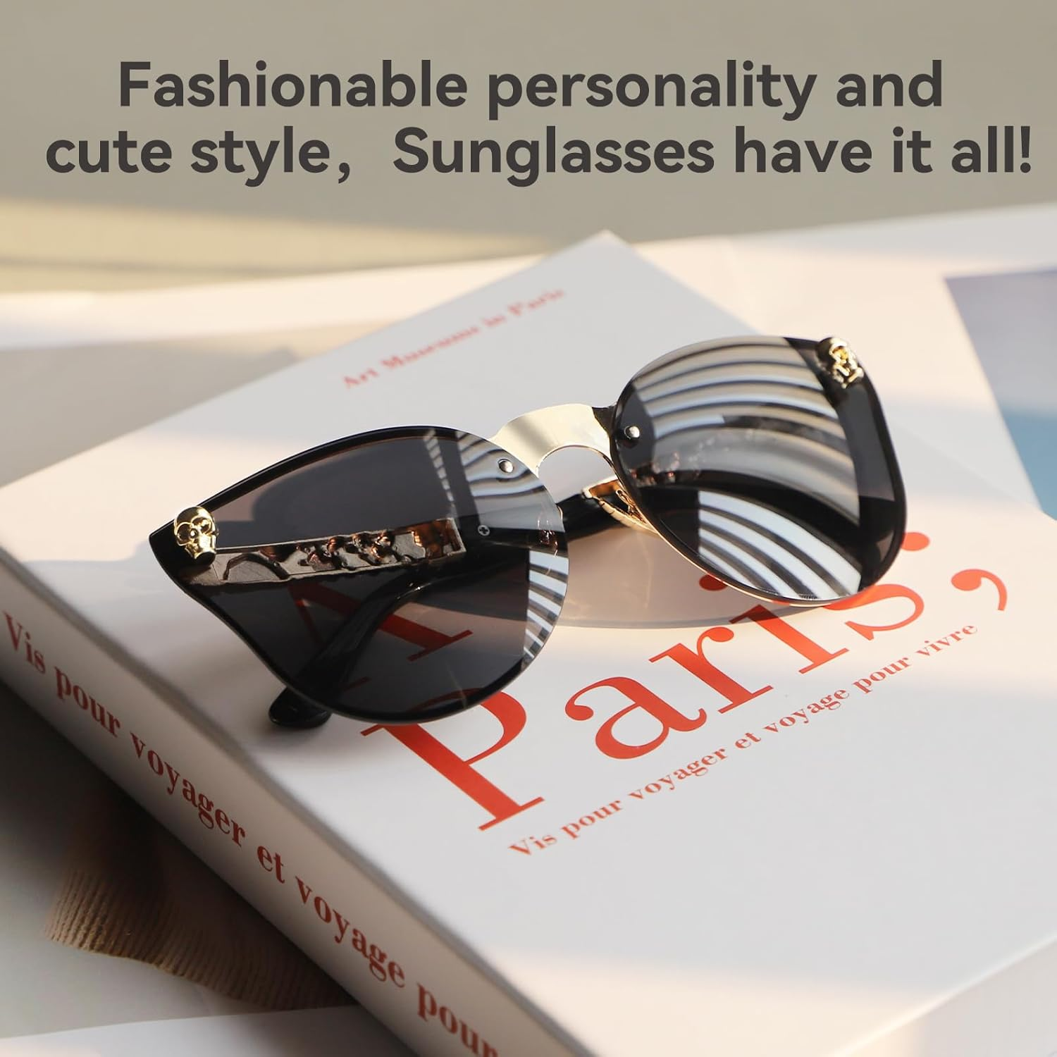 Rimless Cat Eye Sunglasses with Skull Design, Stylish UV400 Protective Shades THE SKULL AND CAT EYE DESIGNS - Sunglasses collection remains true to its classic heritage while continuously evolving to meet today's fashion demands. UV400 PROTECTION – Dollger Vision lenses can block 100% of both UVA and UVB radiation. UV400 rated sunglasses is essential to protecting your eyes against long term UV damage and keeping your eyes healthy when you go out. HIGH QUALITY MATERIALS – This great pair of sunglasses was made of high quality plastic material that is durable enough for long time using. They are suitable for any outdoor wearing and weather conditions. PERFECT ALL ROUNDER – These sunglasses are the perfect choice for outdoor activities such as walking, driving, shopping, traveling, taking photos, and is suitable as high fashion accessory and daily wear all year round. It is also gift packaged ready, making it a wonderful yet practical gift idea for friends and family! PRACTICAL ACCESSORIES: Each pair of Trendy sunglasses comes with a double-headed screwdriver, cleaning cloth, and pouch. Fashionable and eye-protective, they block UV rays to protect your eyes. Perfect as a thoughtful gift for friends and family, they add flair to daily outings, outdoor activities, or trips, while showcasing your unique style. (n/a)