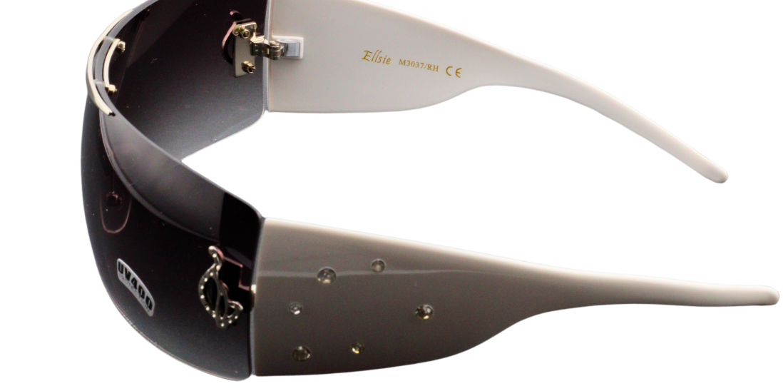 Elevate your style quotient with these trendy unisex sunglasses. The rimless, white plastic frame of these shades exudes a classic vibe, while the gradient, tinted lavender lenses lend a touch of elegance. The oversized sunglasses with temple length of 120mm are perfect for shielding your eyes during sunny days. These shield-style sunglasses are lightweight and feature rhinestones and a silver musical clef on the temples, making them a perfect accessory for biker enthusiasts, music lovers, or anyone looking for a fun and retro look. These sunglasses offer UV400 protection and are suitable for all occasions. Add these stylish sunglasses to your collection and step out in style! PLEASE NOTE THAT THE ARMS OF THESE GLASSES ARE WHITE AS IN THE DESCRIPTION. THE ARMS IN THE PHOTOS ARE IN SHADOW AND LOOK DARKER THAN THEY ACTUALLY ARE.