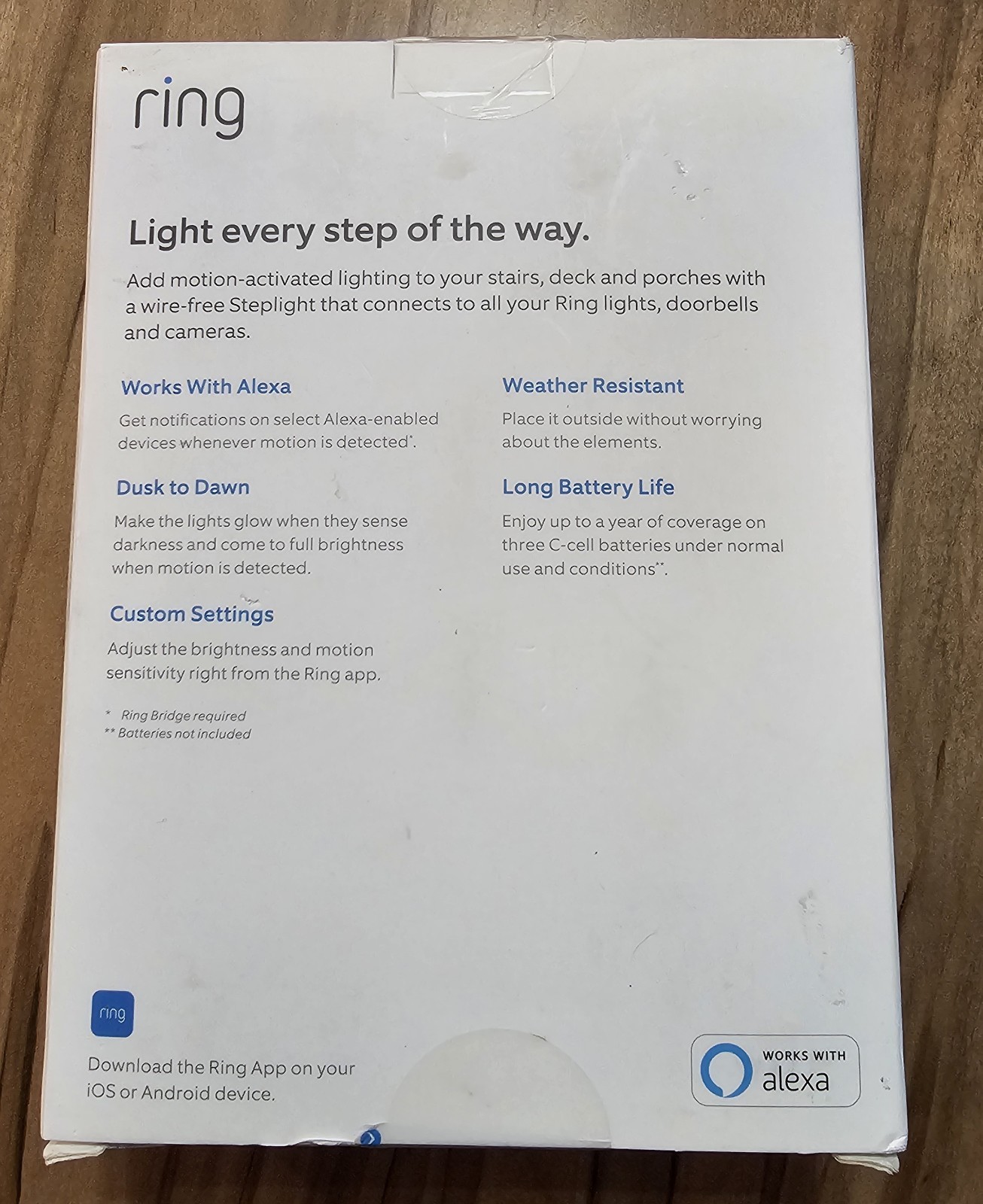 Ring Smart Lighting Steplight, Battery-Powered Outdoor Motion-Sensor Security Please see pictures for Condition Sold as is Does have marks scratches and signs of use