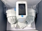 The Ring Floodlight Cam is a hardwired outdoor smart security camera with advanced features like adjustable mounting, 140° field of view, and advanced motion detection with customizable zones. It offers 1080p HD video, live view, color night vision, and two-way audio with noise cancellation. The camera also includes two ultra-bright LED floodlights, a remote-activated 110db siren, and operates in weather-resistant conditions. With its sleek design and high-quality features, the Ring Floodlight Cam is a top choice for enhancing your home security system.