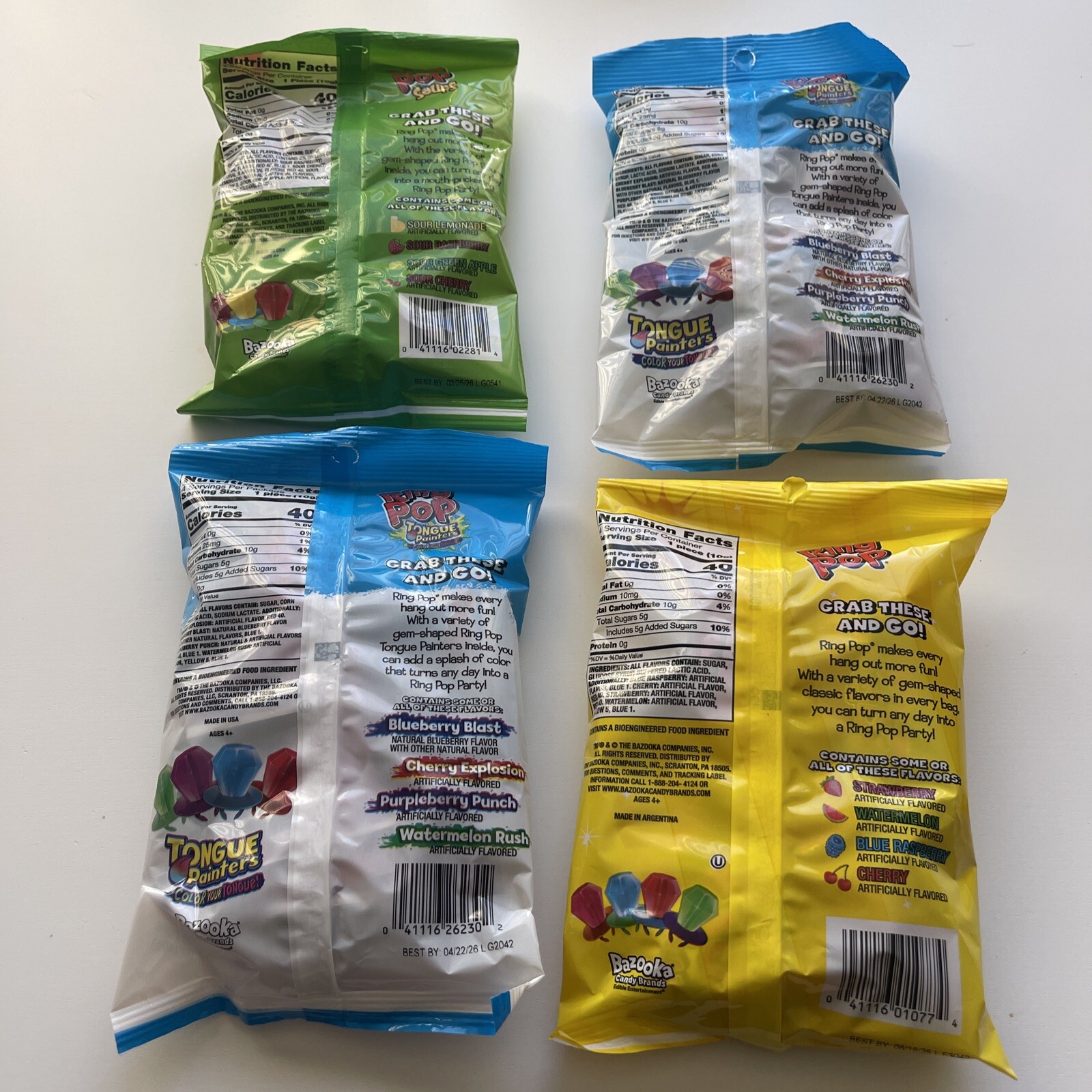 Indulge in the delicious taste of Ring Pops candy with this bundle of 4 bags. Each bag contains 4 lollipops in fun and fruity flavors like Apple, Fruit, Cherry, Watermelon, and Lemon. Perfect for any occasion, these lollipops are sure to satisfy your sweet tooth cravings. Made by Bazooka, this candy is a pantry staple that belongs in every household. With an expiration date of 8/18/2025, you can enjoy these boiled and hard sweets for years to come. Each bag contains 16 servings, making it a great value for your money. Add some color to your tongue and enjoy the fun and fruity flavors of Ring Pops candy.
