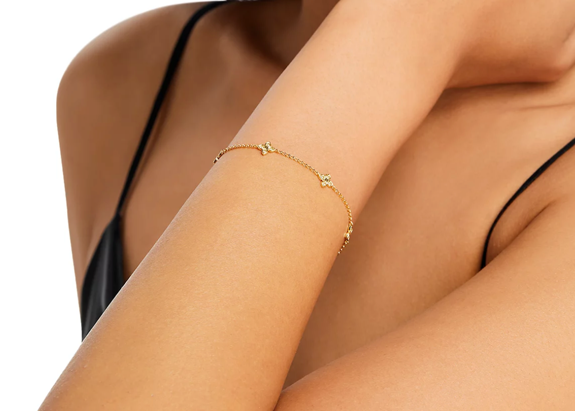 Roberto Coin Verona Love by the Inch 3 Station Diamond Bracelet Verona Love by the Inch collection Three delicately spaced floral stations with glittering diamonds TCW : 0.13 Diamond color grade : G-H Diamond clarity grade : SI1 Purity : 18K yellow gold Length : Adjustable 7.5"L (additional jump rings at 7" and 6.5") Closure : Lobster clasp Signature ruby on interior Made in Italy Brand New; Never worn! Comes in original packaging w/ satin Roberto Coin jewelry pouch