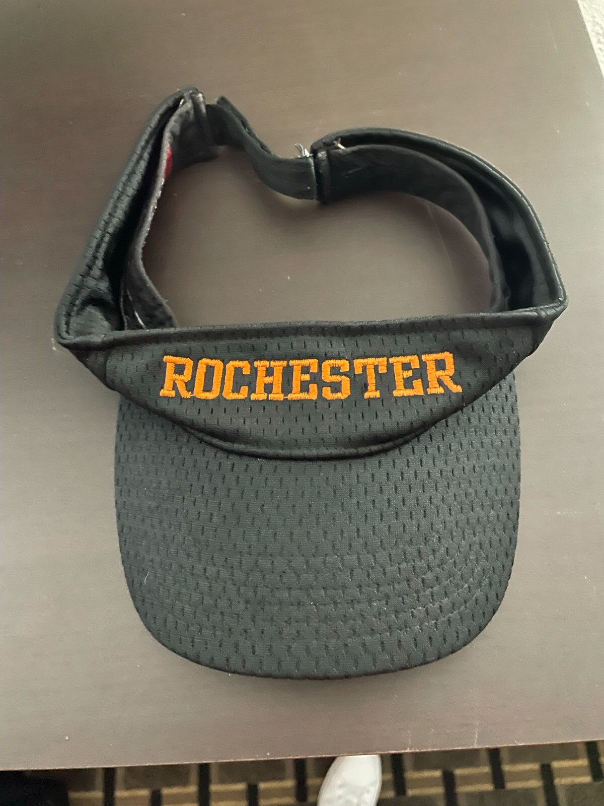 Rochester Visor Cap, Pacific Pro Series, Adjustable Black, Preowned This stylish and lightweight Rochester visor cap is part of the Pacific Pro Series collection. Made with breathable black fabric, it features an embroidered "Rochester" in orange, offering a bold and sporty look. The adjustable strap ensures a comfortable fit for most sizes. Color: Black with orange embroidery Perfect for sports fans, collectors, or casual wear, this visor cap adds a touch of Rochester pride to your wardrobe.