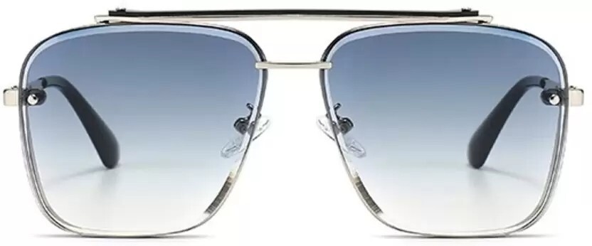 These sunglasses are in a Grey square shape with a dark blue lens and dark blue arms. The sunglasses come with a box and a case.