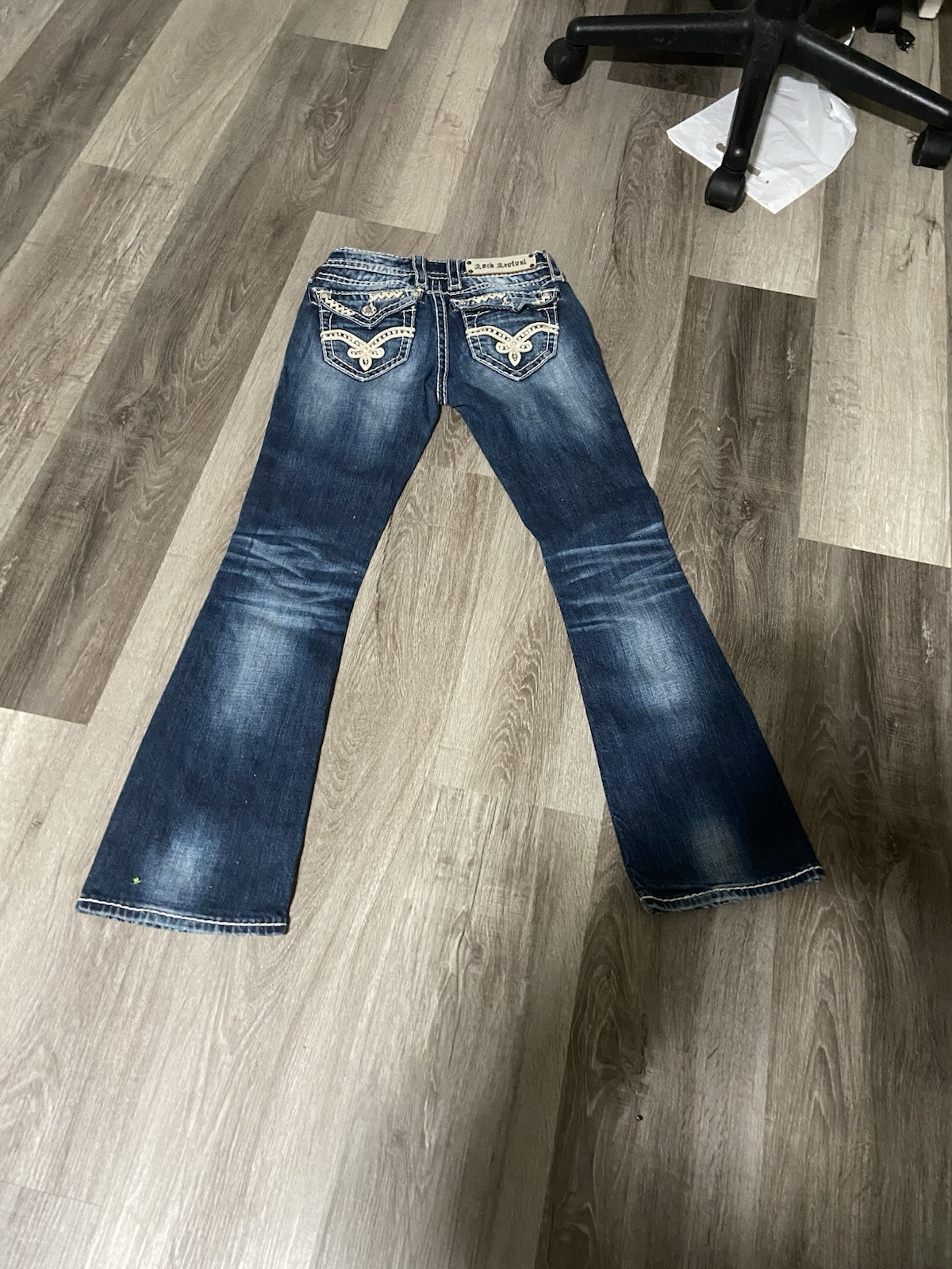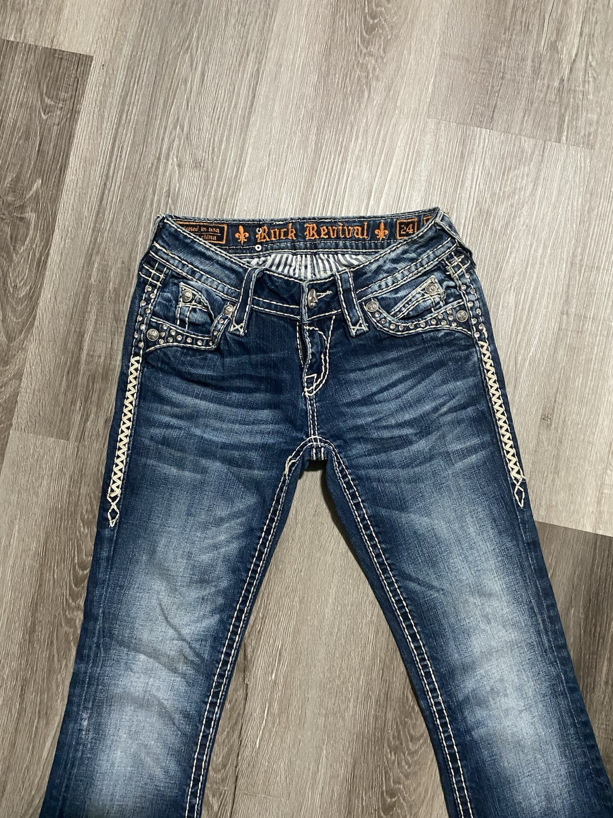 Experience the perfect blend of style and comfort with these Rock Revival bootcut jeans. Designed for the fashion-forward woman, these jeans feature a classic blue hue crafted from a premium blend of cotton and cotton blend materials. The regular size 24 ensures a flattering fit that complements your silhouette.