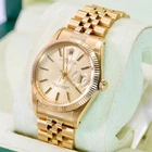 The Rolex Date 15038 from 1982 is a timeless piece that exudes classic elegance and sophistication, embodying Rolex’s legacy of quality and precision. Crafted in 18K yellow gold, this vintage watch features a 34mm case with a fluted bezel, a date function, and an iconic Rolex dial that has remained a favorite among collectors and enthusiasts for decades. In pristine pre-owned condition, this piece has been meticulously maintained with no hairlines on the crystal and no scratches on the case, reflecting the exceptional care it has received over the years. Rolex Date 15038 Year: 1982 Mint pre-owned condition Clean crystal, no hairlines No scratches on case Comes with box & Pappers
