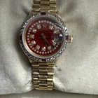 The Rolex “Red Vignette” Ladies Date Just 18k with Diamonds and Rubies is a luxurious wristwatch designed specifically for women. This elegant timepiece features a gold case and President Bracelet about 7.25 inches with a screwdown crown for a secure fit. The mechanical automatic movement ensures accurate timekeeping, while the water-resistant and scratch-resistant features make it suitable for everyday wear. With stunning diamonds and rubies on the dial, this Rolex Lady Date model is both stylish and functional, and runs perfectly.This watch is unique and you will receive many comments on its beauty. I have researched this watch and my pricing is competitive. Any reasonable offers will be considered.