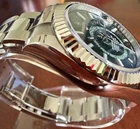 This Rolex Sky Dweller 336934 wristwatch features a mint green dial and an oyster bracelet, making it a stylish and elegant timepiece. With its analog display and high-quality construction, this Rolex model is a standout choice in the world of luxury watches. This full set includes box and papers, hang tag, bezel protector, and new style Rolex Box adding to its value and appeal for watch enthusiasts.