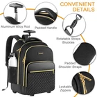 Return Policy Fast Delivery Trusted seller Rolling Backpack Carry On Luggage For Adults With Wheels, 40L Wheeled Backpack For Women, Travel Roller Backpack, Rolling Bag, Black Gold Product Description Reinforced Structure: Our rolling backpack for women features wear-resistant and silent rubber wheels suitable for various terrains, reinforced with a steel axle and high-density engineering plastic. The bottom and sides are covered with waterproof-coated polyester to prevent damage from bumps and scratches. A sturdy, high-quality aluminum telescopic handle adjusts to 2 heights, can reach up to 41.3 inches in height Spacious Compartments: The wheeled backpack's main compartment features elastic bands with buckles, which can accommodate clothing and personal belongings for a 2-4 day trip. The padded laptop compartment is suitable for a 18-inch laptop. Individual storage spaces for pens, notebooks, tablets, bluetooth headphones, power banks, and other items Unique Features: The rolling backpack has a waterproof cosmetic pocket in the front compartment for dry and wet item separation. The backpack's size meets most airlines' carry-on requirements(22*14*9). The main compartment includes an external USB charging port and you can charge your phone anytime, anyw. The backpack with wheels is equipped with lockable metal zippers for added theft protection Material: The rolling backpack for adults extensively utilizes 900D high-density polyester fiber, which offers superior tear resistance and durability, while also being lightweight. The carry handle and side pockets are made of PU material, enhancing the overall class of the roller backpack. Both the shoulder straps and carry handle have been integrated with soft padding for improved comfort, suitable for travel, college, and business trips Convertible Design: The backpack on wheels seamlessly switches between suitcase and backpack modes. When configured as a backpack, it boasts a bottom design with a concealable wheel cover that, when extended to envelop the wheels, prevents your clothes from getting soiled. As a suitcase, both shoulder straps can be fully stowed away in a compartment on the back, ensuring the straps don’t drag on the ground and keeping your travel mood unaffected Multi-Purpose: rolling laptop bag is suitable for overnight stays, commuting, business trips, impromptu trips and road trips. It can be a great gift for businessmen, family and friends if he or she is looking for a practical, high quality, professional rolling work backpack Shipping Returns Payment Shipping Shipping is FREE to all addresses other than APO/PO boxes in the lower 48 states. All our stock ships from US-based warehouses. Shipped via USPS or UPS (depending on location and package weight) Unless stated otherwise, all orders will ship within 24-72 hours of your payment being processed. Check our feedback to see the great reviews of FAST shipping we offer. Returns Seller does not accept returns Payment We currently accept payment via eBay managed payments only. Once payment is cleared, we will dispatch your shipment within 1-3 business days. Please refer to the "Shipping" tab for more information regarding shipping speed to your destination.