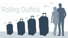 Description Travel in style with this great soft-sided rolling duffle bag. Bag features a heavy duty polyester construction. Inline skate wheels for superior mobility, internal retractable hide-away handle system, u-top opening provides easy access to roomy zipper secured main compartment. Two front zipper-secured compartments, adjustable ergonomic shoulder strap. Made of 600 denier heavy duty polyester. Measures 22" L x 12" W x 11" H Wheels,Zipper 40"x17"x17" Large u shape top pocket Six front pockets Internal handle Wheels,Zipper 17" high and 17" wide Large u shape top pocket Six front pockets Internal handle