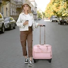 Design: The highlight of this briefcase with wheels lies in ensuring stability on the ground when fully loaded while also allowing for quick passage through airport security checks by being able to open 180 degrees. The bottom of our rolling laptop bag women features an integrated design, coupled with 4 swivel wheels, allowing you to maneuver your luggage from multiple angles, particularly suitable for narrow passages such as airplane aisles Reinforced Structure: Our rolling briefcase features wear-resistant and silent rubber wheels suitable for various terrains, reinforced with a steel axle and high-density engineering plastic. The bottom and sides are covered with waterproof-coated polyester to prevent damage from bumps and scratches. A sturdy, high-quality aluminum telescopic handle can reach up to 40.3 inches in height. accommodating different users Spacious Compartments: The rolling laptop bag's main compartment features built-in elastic bands with buckles, which can accommodate clothing and personal belongings for a 4-5 day trip. The padded laptop compartment is suitable for an 18-inch laptop. There are individually designed storage spaces for pens, notebooks, tablets, Bluetooth headphones, power banks, and other items, making them easily accessible and saving you from having to search through your bag Detailed Features: The front compartment of the rolling computer bag features a magnetic snap closure design, with a hidden folder compartment inside, making it convenient to quickly access documents or other personal items. The laptop bag with wheels adopt TSA-friendly design, allowing it to open 180 degrees for quick passage through airport security checks. The rolling work bag is equipped with a TSA-approved combination lock Material: The rolling briefcase for women extensively utilizes 900D high-density polyester fiber, which offers superior tear resistance and durability, while also being lightweight. The carry handle is made of PU material, enhancing the overall class of the briefcase; Suitable for travel and business trips Multi-Purpose: The rolling laptop bag is ideal for overnight stays, commuting, business trips, and spontaneous getaways. It makes a wonderful present for businessmen, family, and friends who are in need of a practical, high-quality, professional rolling work bag
