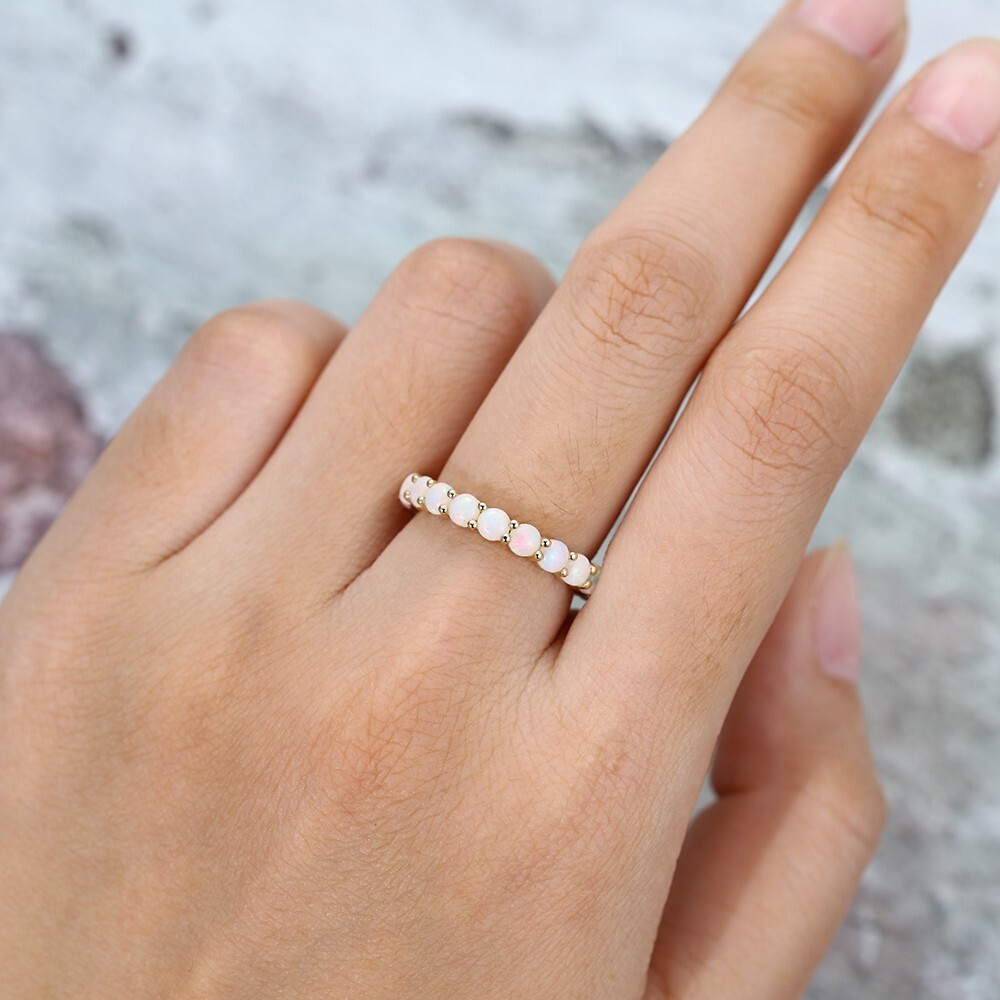 Absolutely stunning ring! The delicate rose gold plating makes the natural opal pop with vibrant colors. It’s lightweight yet feels luxurious, and the craftsmanship is flawless. Perfect as a dainty wedding band or everyday statement piece. Love that it’s handmade and customizable—great quality for the price! Highly recommend this shop for unique, beautiful jewelry.