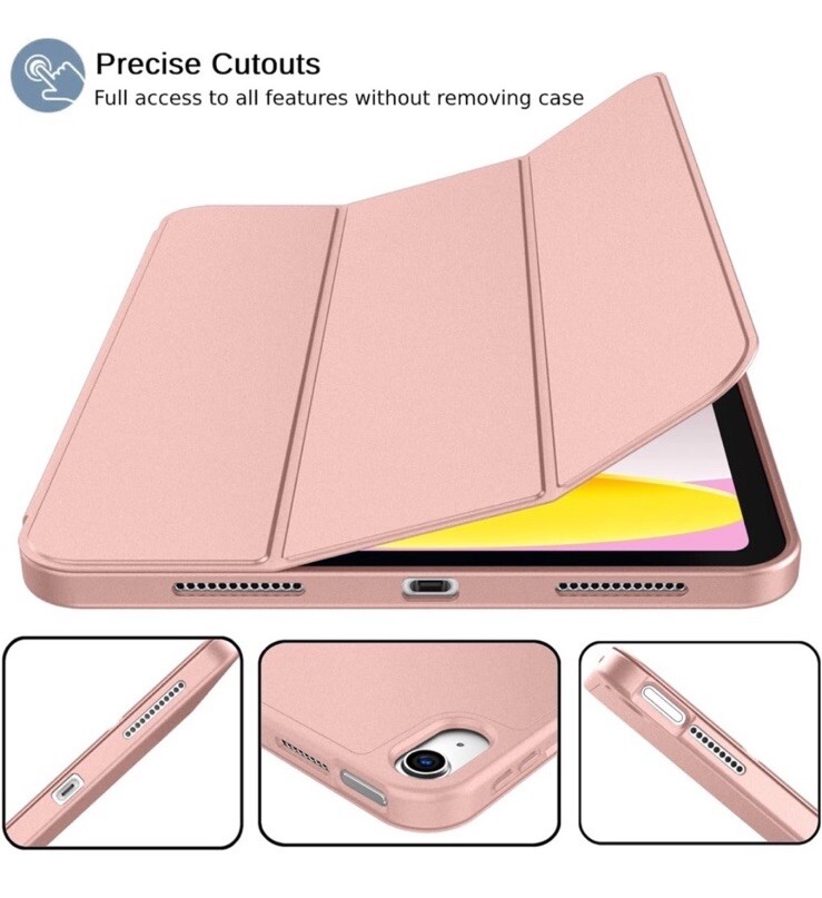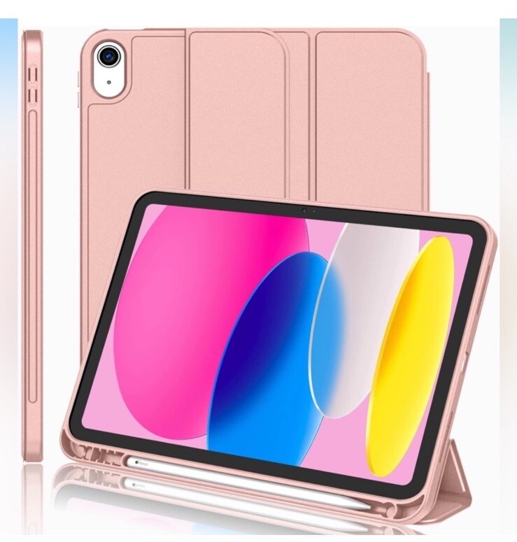Protect your tablet with this stylish rose gold case. Designed for durability and elegance. Although it has never been used it has some small dents but they are not very noticeable, ONLY Tablet case included