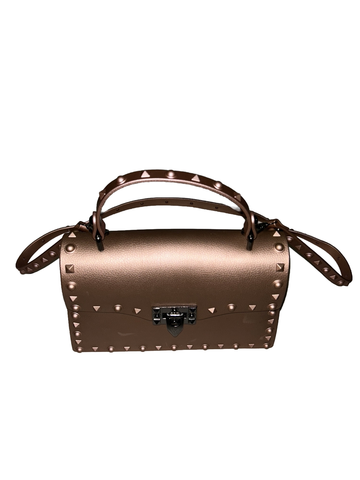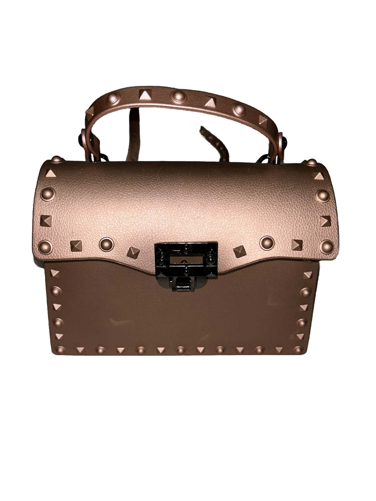 Rose gold. Rivet dot women's handbag. Casual. Big matte frosted jelly handbag. Over the shoulder crossbody. Please see all pictures for details. Sold as pictured.