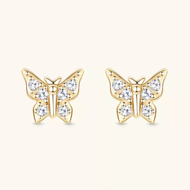 Round Cut Simulated Diamond Butterfly Stud Earrings in 14K Yellow Gold Plated