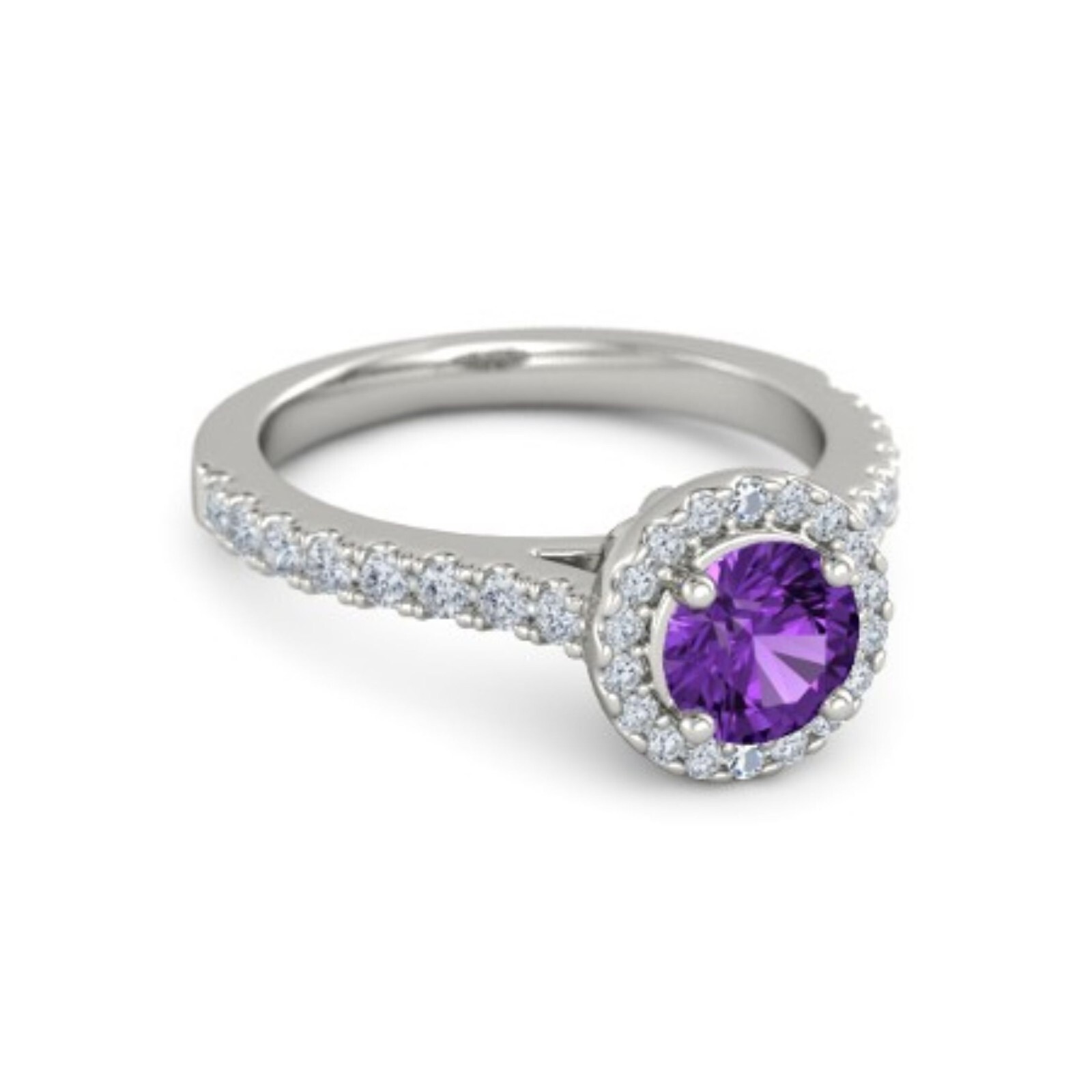 Round Halo Amethyst & CZ Wedding Ring in Solid Sterling Silver